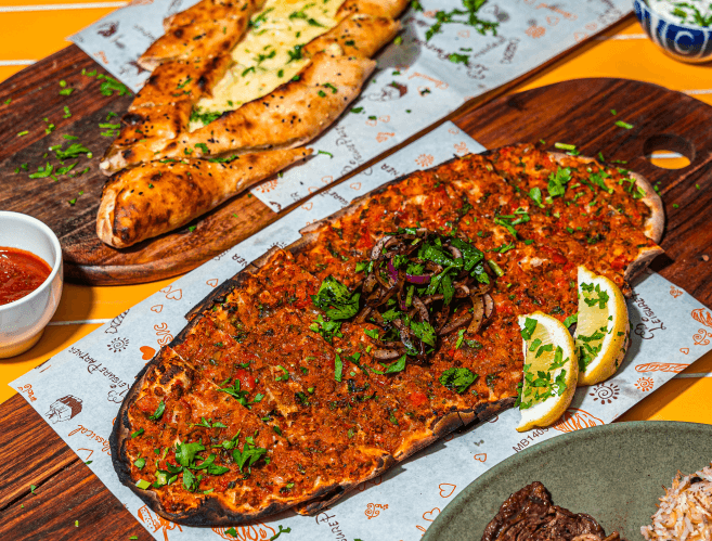 March 7, 2022Garlic And Cheese Pide $24 Turkish flat bread with garlic and cheese.