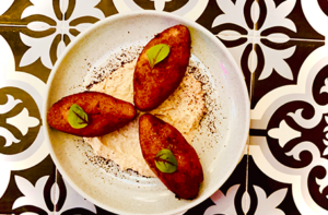 Supangle is a Turkish chocolate pudding composed of cake topped with a silky, smooth pudding and decorated with coconut and chocolate flakes.
